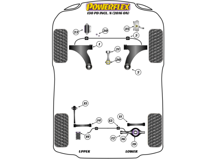 Powerflex Polyurethaan Rubbers 2st Rear Lower Rear Control Arm Bush (Nr. 12) voor Hyundai i30N Performance incl. Facelift (2017+)